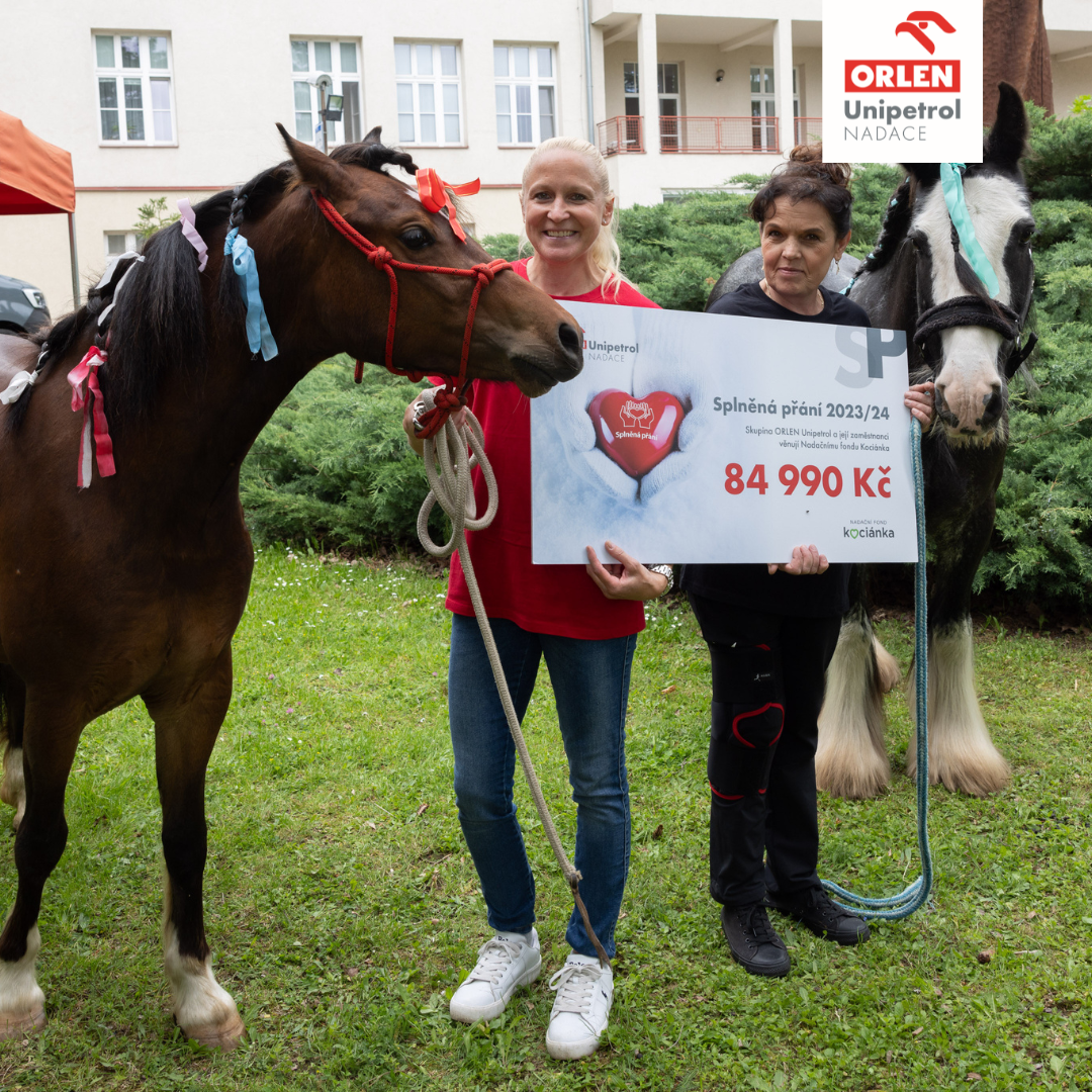 Kromě dobrovolnické práce jsme také předali symbolický šek s částkou, která se vybrala v rámci zaměstnanecké charitativní sbírky Splněná přání. Díky této částce si Kociánka mohla pořídit dva poníky na hipoterapii a animoterapii.