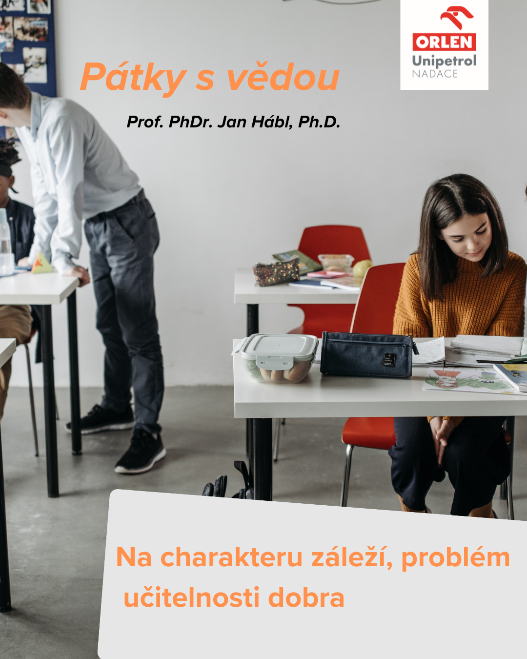 Tentokrát je přednáška určena pro pedagogy, rodiče a všechny, kdo pracují s dětmi. Na charakteru záleží – problém učitelnosti dobra.